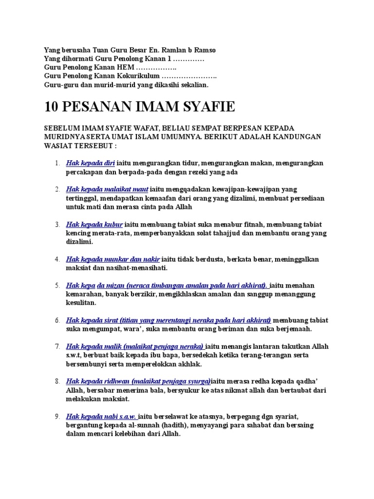 Nasihat Emas Dari Imam Syafi I Minda Rakyat