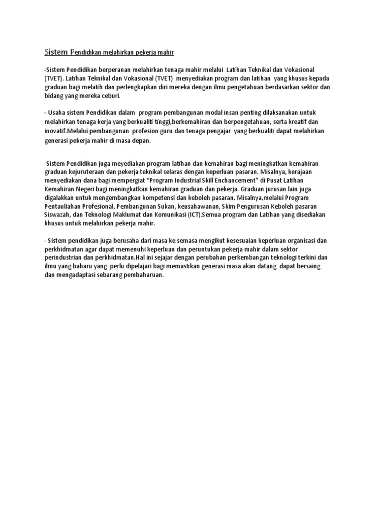 Sistem Pendidikan Melahirkan Pekerja Mahir Pdf