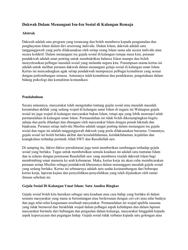 Ttg Tesis Dakwah Dalam Menangani Isu Sosial Di Kalagan Remaja Pdf