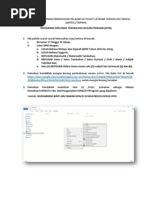 Manual Permohonan Kemasukan Pelajar Ke Pusat Latihan Teknologi Tinggi Adtec Taiping Pdf