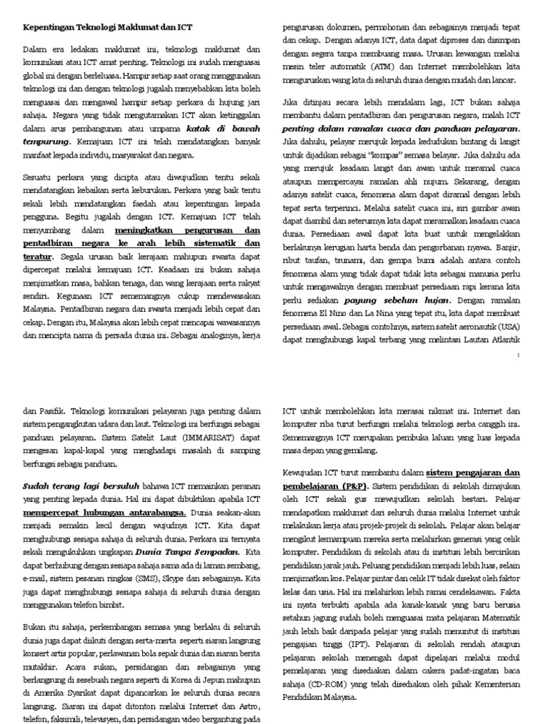 Karangan Kebaikan Teknologi Maklumat Dan Komunikasi Teknologi Ini Sudah Menguasai Global Ini Dengan Berleluasa