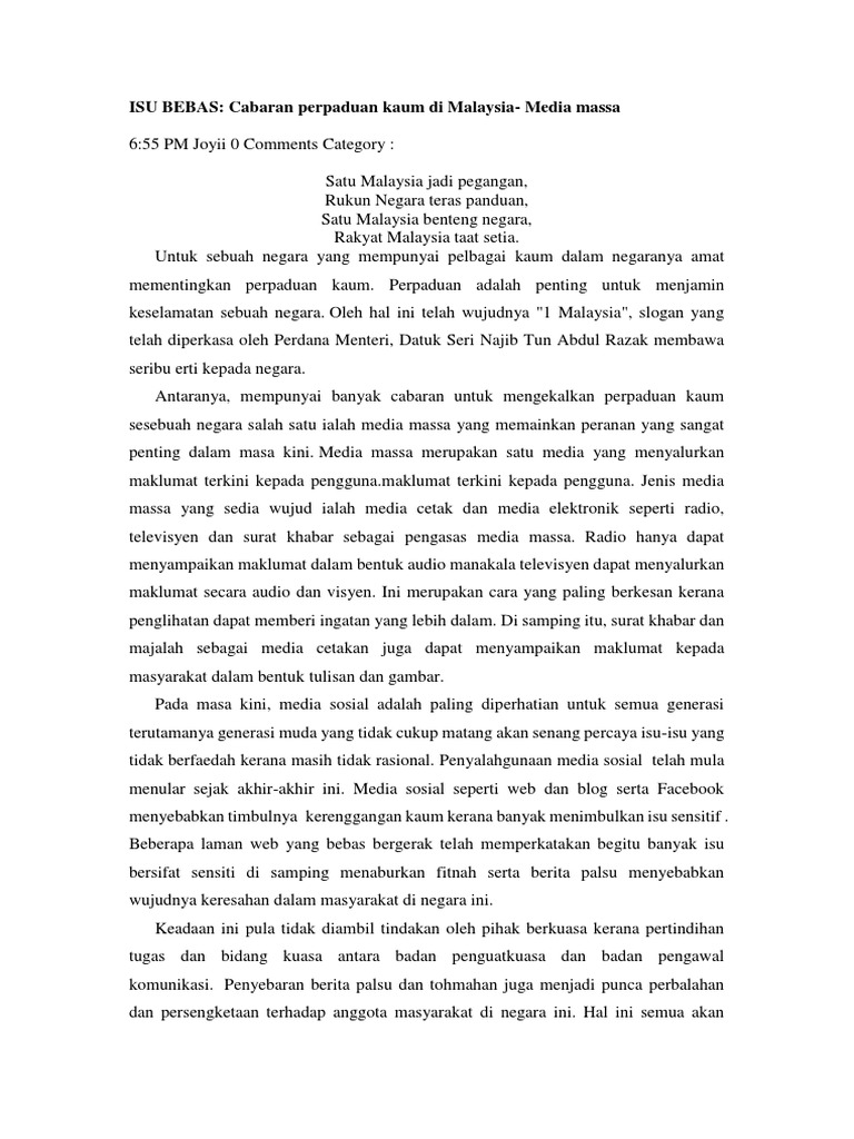 Peranan Media Massa Dalam Perpaduan Kaum Di Malaysia Pdf